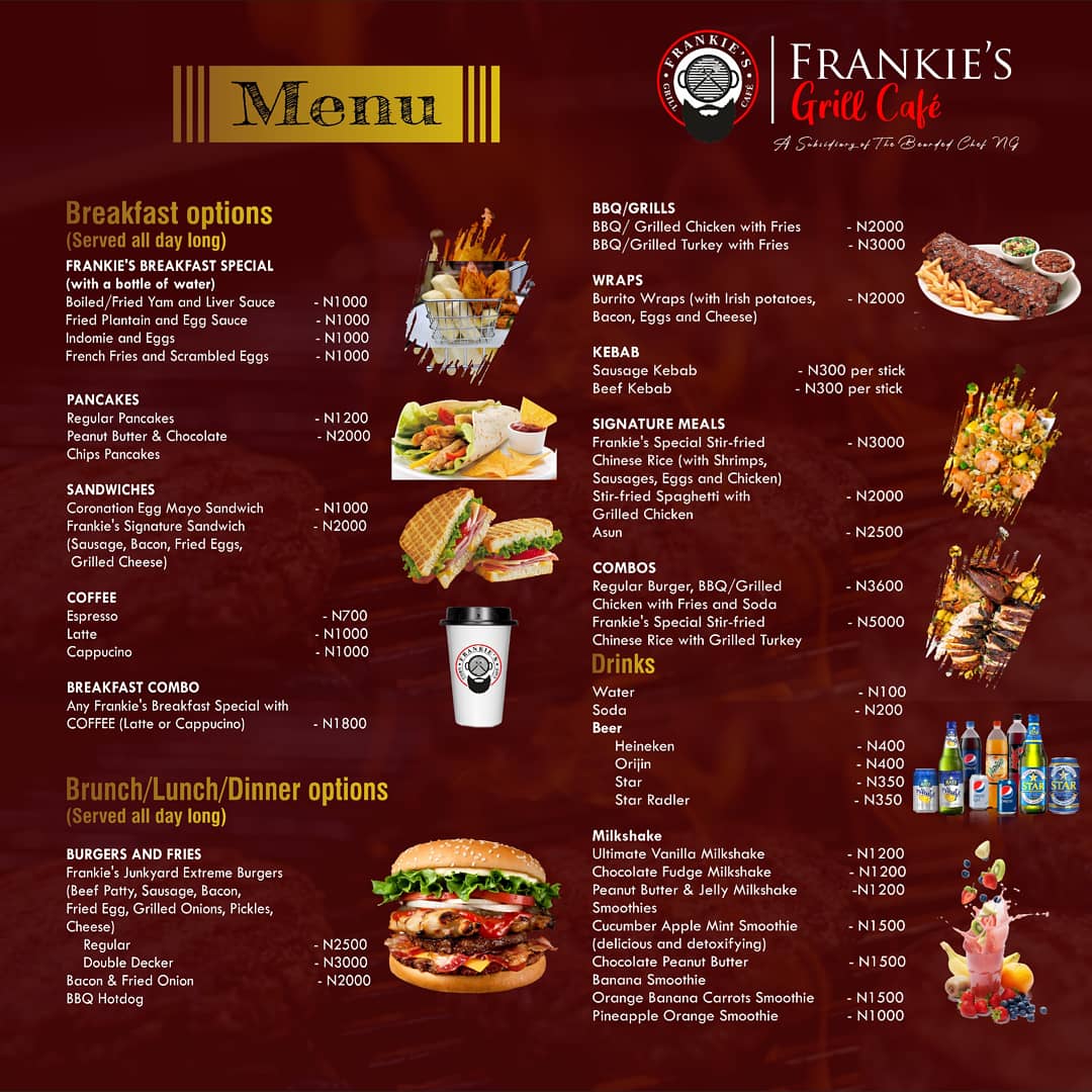 FRANKIE'S Grill Cafè and Suya Menu